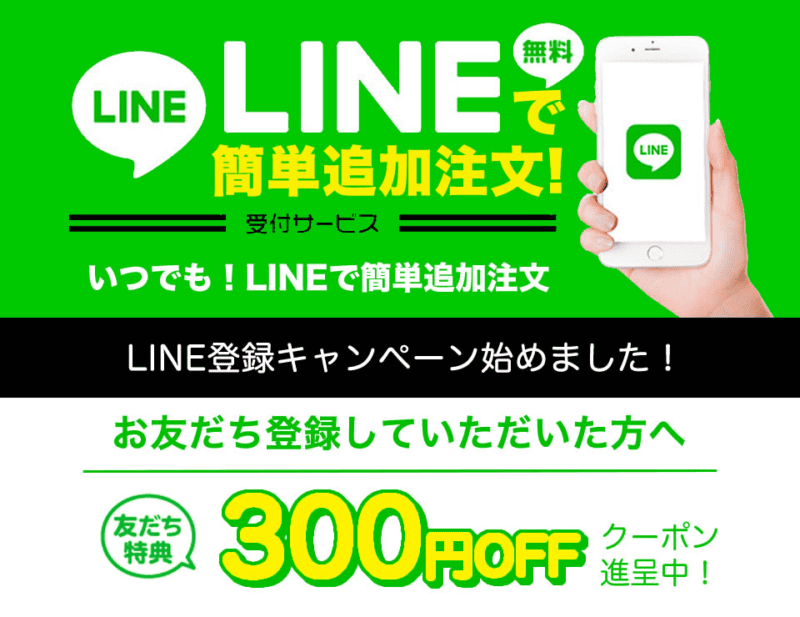 補足: LINE(300円OFF)とシール(景品交換)は、すべてのパターンに追加可能です。